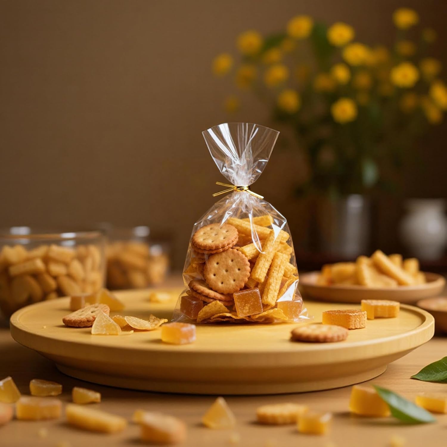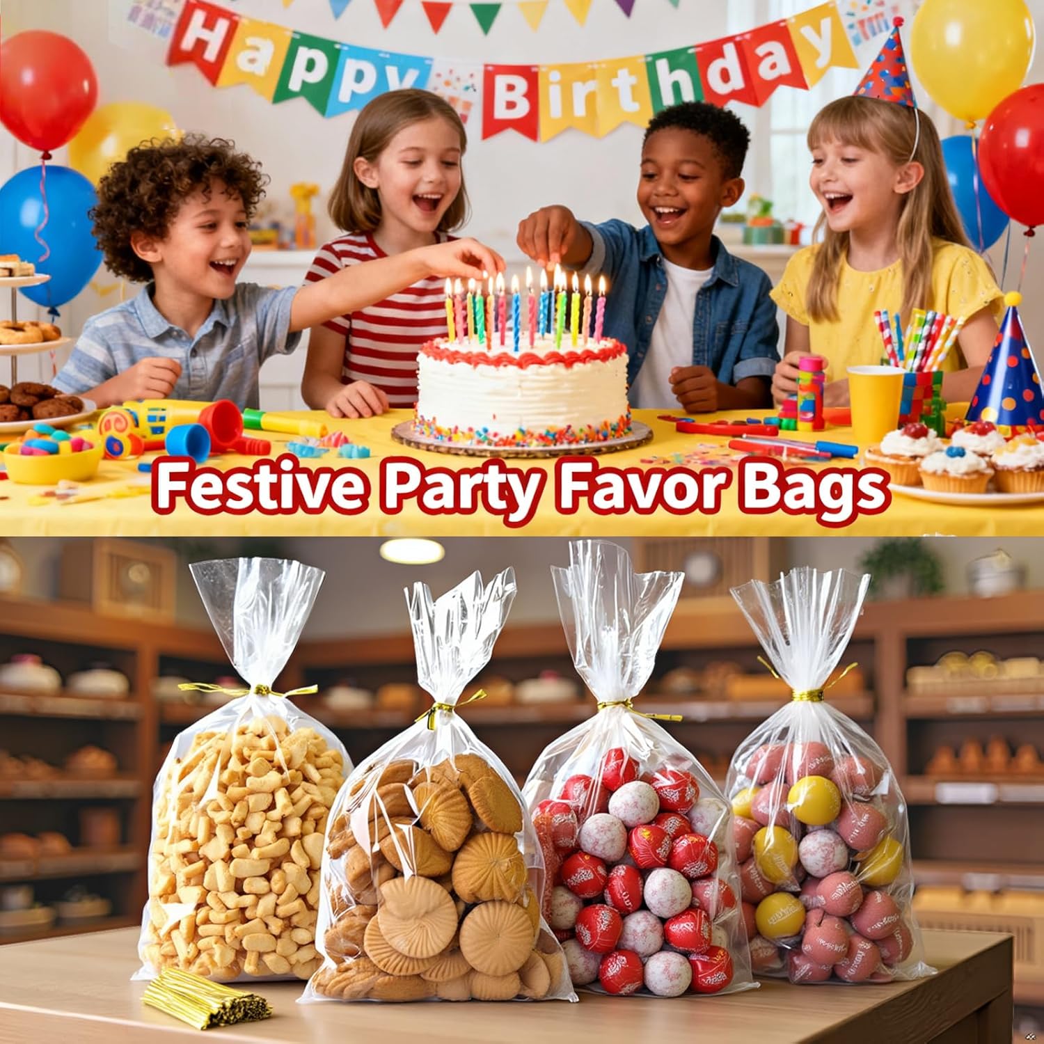 Clear Cellophane Treat Bags with Twist Ties, Transparent Individual Plastic Cookie Bags Small Cello Gift Candy Bag for Party Favors Goodie Cookies Bakery